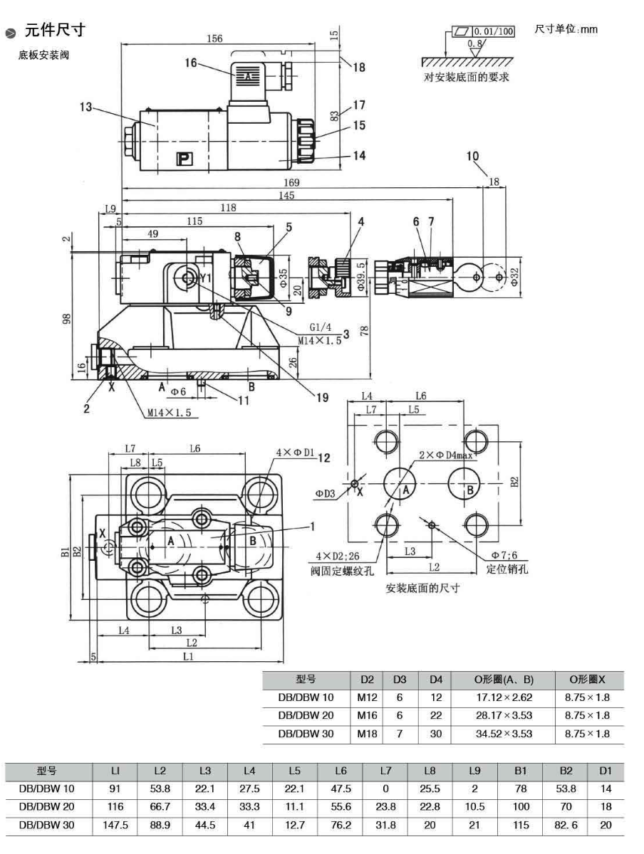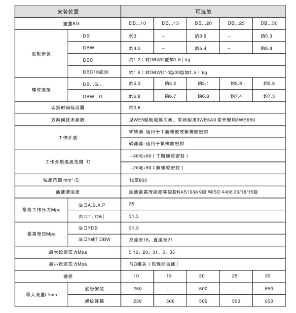 用于底板安裝,安裝面按DIN24340 E型,ISO 6264和CETOP-RP 121 H,用于螺紋連接,用于油路塊安裝。4種調(diào)整元件:①旋鈕②帶護罩的調(diào)節(jié)螺栓③帶刻度的有鎖旋鈕④帶刻度旋鈕。5種設定壓力,借助于安裝在其上的電磁方向閥操作卸荷??蛇x的切換時間延遲(僅DBW型)。