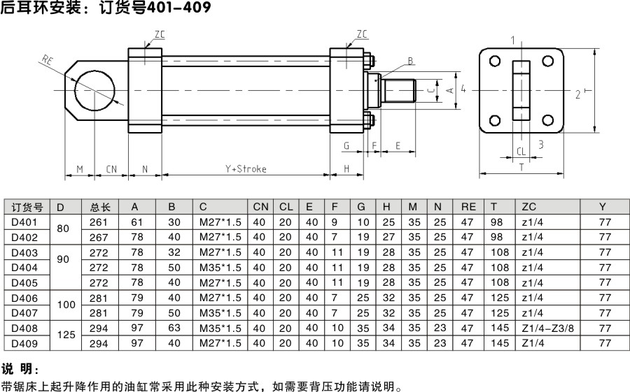 后耳環(huán)升降油缸
