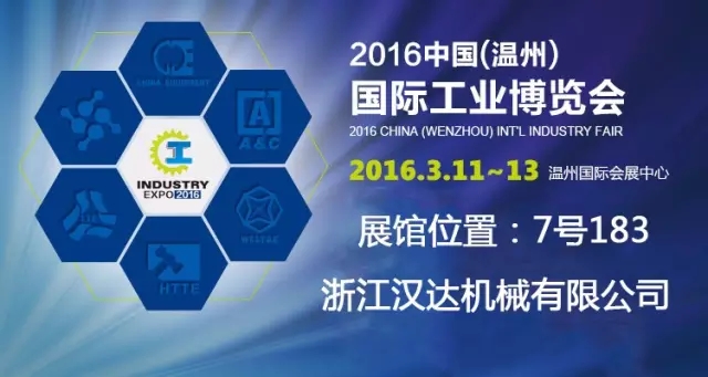2016月3月11日至13日,浙江漢達(dá)參加2016中國(guó)(溫州)國(guó)際工業(yè)博覽會(huì),屆時(shí)將展出油缸和液壓閥。