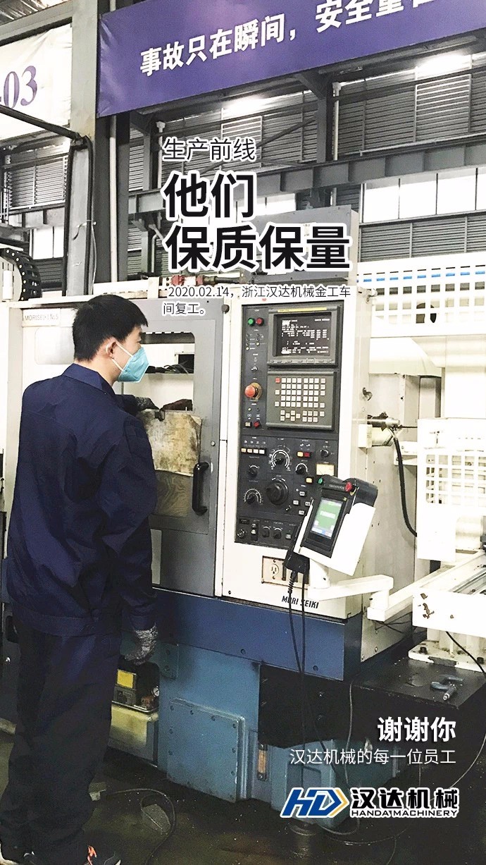 依據(jù)批復(fù)文件,浙江漢達(dá)機(jī)械于2月14日開(kāi)始逐步復(fù)工,分批次上班。各員工先在家自我測(cè)量體溫,低于37.2度的返回公司,溫度自查合格員工戴口罩到公司后,依次測(cè)量體溫,領(lǐng)口罩,填寫承諾書領(lǐng)取健康證后上崗。